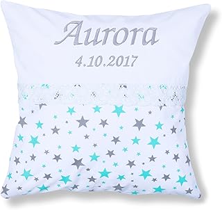 Amilian® Kissen 40 x 40 cm mit Namen Datum Sternchen KLEIN Türkis